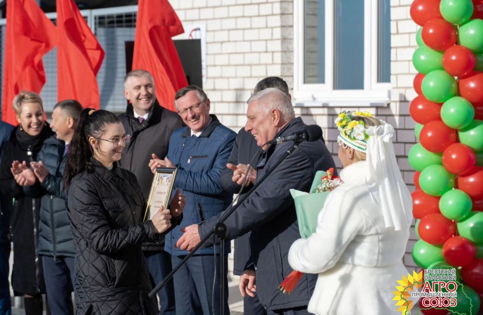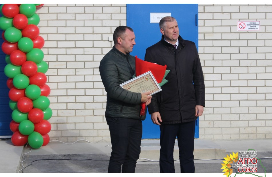 В связи с открытием реконструированного животноводческого комплекса состоялись и награждения. Исполнительный директор Брестского областного агропромышленного союза С.Д. Ашмянцев вручил Почетные грамоты коллективу ОАО «АгроНива», а также его работникам: главному зоотехнику Масло Вере Николаевне и бригадиру производственной бригады в животноводстве Гараху Павлу Васильевичу.