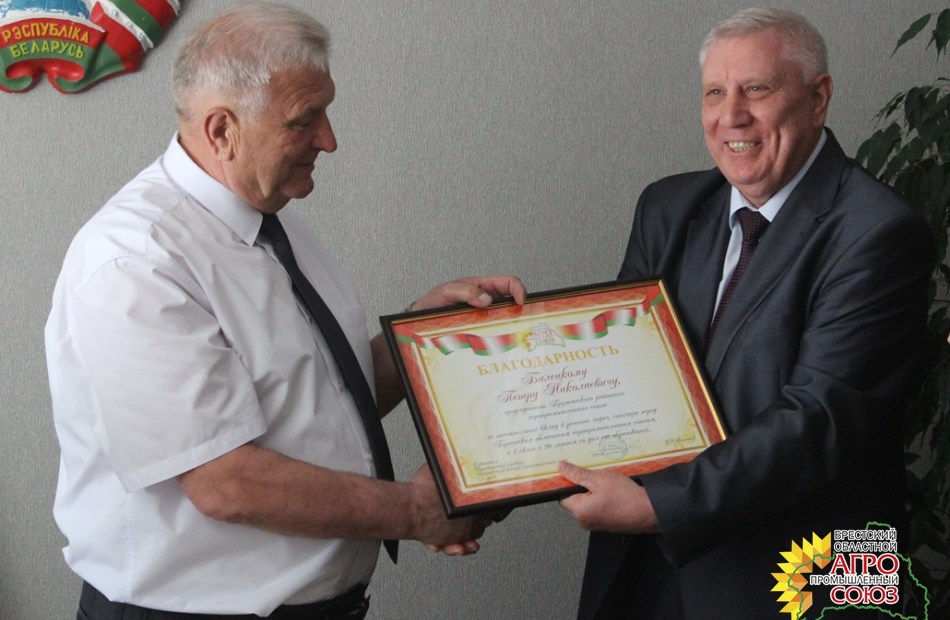 С юбилеем Петра Николаевича сердечно поздравили председатель комитета по сельскому хозяйству и продовольствию облисполкома Анатолий Леонидович Щупленков, председатель Пружанского райисполкома Михаил Михайлович Гришкевич, его первый заместитель – начальник райсельхозпрода Сергей Александрович Глушко, а также исполнительный директор Брестского областного агропромышленного союза Сергей Дмитриевич Ашмянцев, который вручил Петру Николаевичу Благодарность Брестского областного агропромышленного союза, цветы и юбилейный сувенир. Кроме того, Сергей Дмитриевич в торжественной обстановке вручил юбиляру Почетную грамоту Республиканского агропромышленного союза «БелАПС», которой отмечен П.Н.Билецкий.